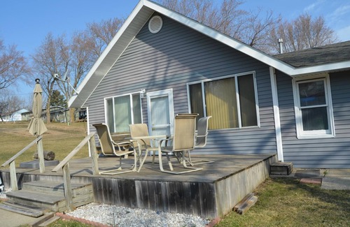 Family Vacation begins off the Beaten Path. This 3-bedroom 2 bath home is located in the quiet neighborhood of East Okoboji Beach, this cabin sleeps 8 and offers an oversized lot for parking/yard games and is just blocks away from public boat access great for Walleye Weekend. If this cabin had any issues within the reviews, they are now fixed. Your home away from home offers full sized kitchen appliances, dish soap, paper towels, garbage bags, small appliances such as a blender, toaster, full pot coffee maker with filters (coffee not provided). Steak knives, pots, pans, silverware, place settings and prep bowls are furnished. Open Floor plan with table that seats four and provides direct access to your private deck. Put some burgers on the grill (gas), dine on the deck with outdoor table and four chairs, bench for extra seating, canopy to provide shade if needed, finish the evening off by the fire with smores. (wood provided)