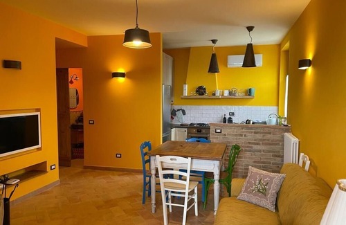 The building was completely renovated in the year 2015 using original materials ( ancient bricks and terracotta tiles, wooden beams , local pottery handmade by the masters of Deruta ) . The house consists in two apartments fully furnished in country style also using antique furniture . Each house consists of ground floor living room with a sofa wedding bed , kitchenette , bathroom and fireplace; on the second floor are located a double bedroom , a room with two single beds , a bathroom with shower . TV LED in each room . Pool available.