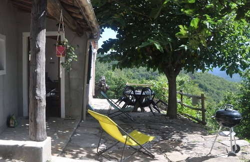 The 50-m² cottage is located 8 km away from Vigan, at 600 m above sea level and opposite to Esparon Rock, in the heart of the Cévennes. It hosts up to 5 people. The house is located in the middle of the Cévennes chestnut grove. It is ideal for nature lovers, offering panoramic views of the valley and the picturesque village of Esparon. Its location also allows for hiking directly from the house, on foot, by bicycle or mountain bike. You can also go pick chestnuts and mushrooms in autumn. It consists of a bedroom and a large living room, and an open-plan kitchen. A 40-m² living room is arranged around a big Jotul stove that allows for spending pleasant evenings by the fire in the cold season. Outside, there is a south facing terrace with a panoramic view. According to your plans, you will settle here for having breakfast with the first rays of sun before taking a stroll and coming back for a well-deserved aperitif-barbecue or for taking a nap in a hammock in the shade of trees first. It is all up to you!