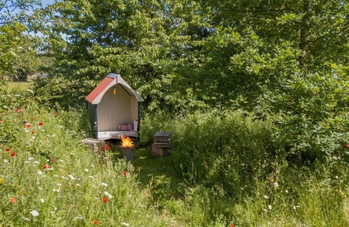 "Old Tinny" is one to two gorgeous Cider Huts located at either end of an orchard with wild meadow flowers. There's a prosecco treasure hunt, a tandem, homemade cider and marshmallows around a firepit.