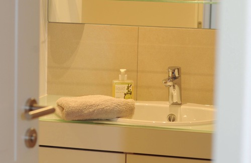 Modern furnished studio with approx. 44 m2 living space, separate bathroom with large level rain shower, toilet, vanity with large shelf, washing machine, ironing board and steam iron.