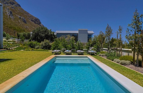 Olifantshoek is the ultimate in superior luxury holiday living, with masterful architecture matching opulent decor fit for royalty. This mansion has panoramic views of the sun drenched Overberg mountains and the big blue ocean. It is located only a short drive from Hermanus central and within a short drive or walking distance of blue flag status beaches. The artistically designed home with stunning garden offers plenty of spaces to relax and entertain, with views that draw attention from anywhere in the house, inspiring rest, revitalisation and reflection.