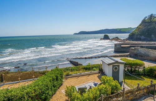 The views become even better outside, when experienced with a glass of bubbles from the lavish four-seater hot tub looking out across the sea! There's a slate patio with shower area that's particularly lovely after a sandy day on the beach, and a beautiful garden with decked terraces and colourfully lush flowers and plants that have been carefully selected to make the most of their surroundings.
