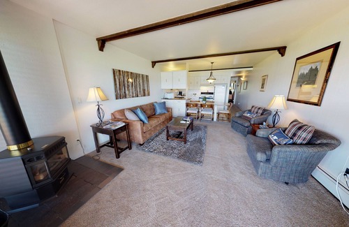 Lake Dillon Condominiums 106 is an attractive and comfortable 1 bedroom, 1.5 bath condo on Lake Dillon with incredible mountain and lake views. Sleeps 4. Walk out the door to the lawn and lakeshore in winter or summer. Condo features free WiFi, cable, flatscreen in living room, gas fireplace and covered patio with panoramic views. Fully equipped kitchen with a dining area for 5. Deck has a patio table for 4.
