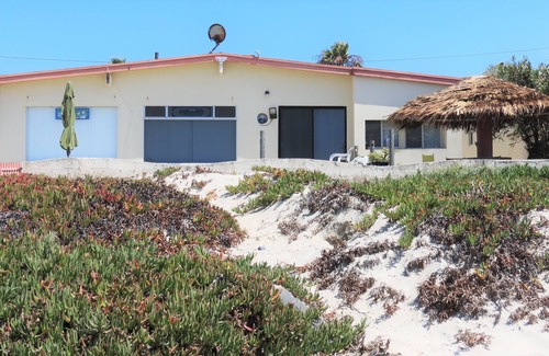 This is a beautiful and serene home away from home...on the beach in wonderful Punta Banda, Baja! Inside you'll find a beautiful master suite plus two other bedrooms. You enter through a nice, private courtyard with access to the provided washer and dryer...and covered parking for one car is available. The first thing you will notice...is why you're here. Pretty much the entire front wall opens a window to our beautiful and serene six-mile beach. There is plenty of seating with a view of the beach, nearby Islands and Ensenada's city lights, at night. Fully equipped kitchen, bar in the great room and even a fireplace. You will love it here. Wonderful space for family events...both inside and out! Two queen beds one double and a twin...plus three recliners in the great room. Two baths with showers are also provided.
