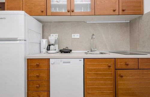 Kitchen (7 m2): Standard equipment: Refrigerator, Stove, Sink, Additional equipment: Combined refrigerator/freezer, Dishwasher, On request: Water kettle, Coffee machine, Toaster
