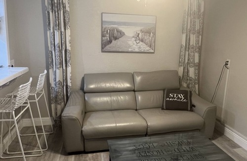 This is a newly remodeled separate building with a private back patio. You will have parking on the property in a gated area. Youtube TV (cable), Hulu, and Netflix are included for both of the TVs. We live in the house on the property and will be available for any needs/questions you may have.