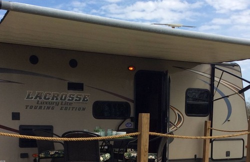 Our beautifully remodeled RV is located on a quiet property with 400ft of waterfront for great fishing (follow parks and wildlife requirements). Minimum rental is one week, we'd prefer 2 people maximum. (Will discuss on a case to case basis.)