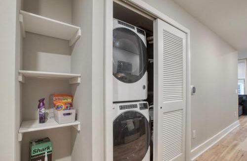 Food & DrinkTea/Coffee makerBathroomBathtub or shower, Walk-in shower, Shower, Hairdryer, Toilet, Free toiletries, Body soap, Towels, Toilet paper, Private bathroom, Conditioner, ShampooGeneralTrash cans, Ironing facilities, Carbon monoxide detector, Fire extinguisher, Heating, Iron, Smoke Alarm, Air conditioningKitchenWine glasses, Electric kettle, Dishwasher, Refrigerator, Stovetop, Microwave, Oven, Kitchen, Dryer, Dining table, Washing machineMedia & TechnologyFlat-screen TV, Streaming service (like Netflix)Living AreaDining areaBedroomWardrobe or closet, LinensViewCity viewAccessibilityToilet with grab rails, Roll-in shower, Entire unit wheelchair accessibleRoom AmenitiesClothes rack, Hypoallergenic pillow, Sofa bed |