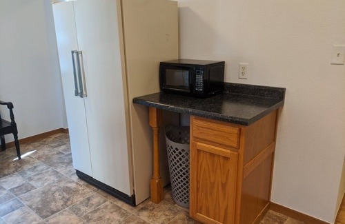 The kitchen is fully stocked. You just need the chef. Pots and Pans, Keurig Machine, slow cooker microwave, toaster, and new dishes are all ready for you to cook a delicious meal.