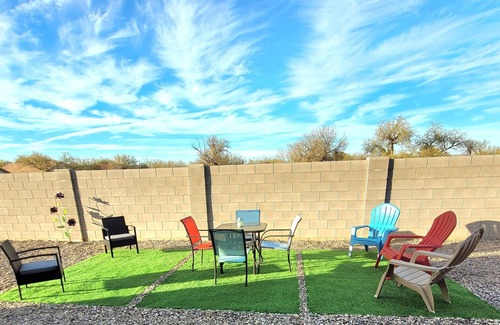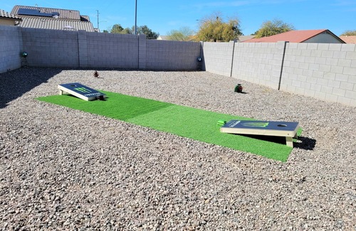 ~A HUGE backyard with seating areas and cornhole!