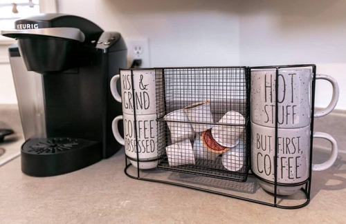 This home welcomes you with a master bed room with a King size bed and private jacuzzi bath, living room ( with 200 channel cable TV) kitchen (with wine refrigerator and large air fryer), 2nd bedroom (Queen Bed) , 2 full baths, and an indoor patio. Smart TV’s in every bedroom. The entire house sleeps 1-6 guests if needed. --4PM CHECK IN // 10AM CHECK OUT