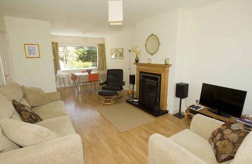 There is an open plan Living/Dining Area and a separate Kitchen downstairs, with two double and one single (with sturdy bunks) bedrooms upstairs. The living/dining area, hall and upstairs bedrooms all have wooden floors. The stairs and landing are carpeted. Outside there is a garage where you can hang your wet suits, store your surfboards, bicycles, etc. There is quite a large front side garden and enclosed side and rear gardens to keep the little ones safe. On the rear patio there is garden furniture (table and chairs). Fuel for the fire is also available in the coal-house. Wi-fi is available.