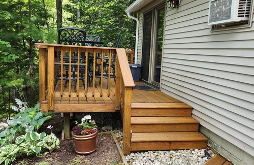 You have full access to the lake side deck and chairs. 2 kayaks and canoes can be used at any time. Property is shared with the owners (an adult couple) who live in their own house. The house has central air/heat.