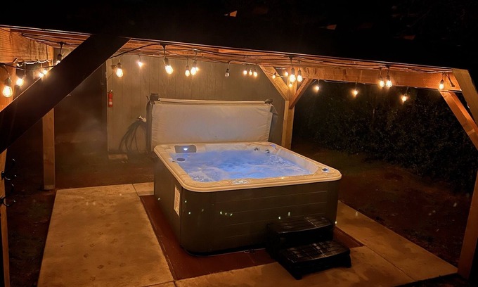 Sit with friends outside around the gas firepit or relax in the Spa.