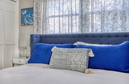 Bedrooms with king, queen, and twin beds, dressed in cozy linens