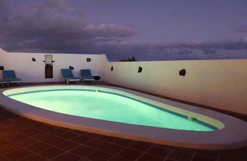 It has a large garden area, ample car parking space, terraces and a heated swimming pool. The house itself has a lovely, shady wooden pergola, perfect for alfresco dining. Inside there are two bedrooms, two bathrooms, kitchen, dining room and lounge with a comfortable sofa bed for two persons. All modern features such as satellite television with English channels, DVD / CD player, cooker, microwave oven, refrigerator, dishwasher, etc are included. Casa Camella has a private position, yet is close to restaurants, bars and shops and only 3 minutes by car from Puerto Calero and 10 minutes from Puerto del Carmen. The airport is only 15 mins away by car. Other parts of the island are all within easy reach. A car is an essential but competitive rates are offered on the island by On line local companies such as Cabrera Medina, Autos Reisen, Plus Car and others.