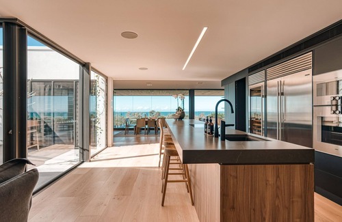 This 4 bedroom (3 with ensuites) holiday home features a wet-edge pool overlooking the ocean, a full 4K Home Cinema and fully equipped gym, open plan living, dining and state of the art kitchen and a stunning master retreat complete with an overscale walk in robe, steam shower and free-standing stone bath.