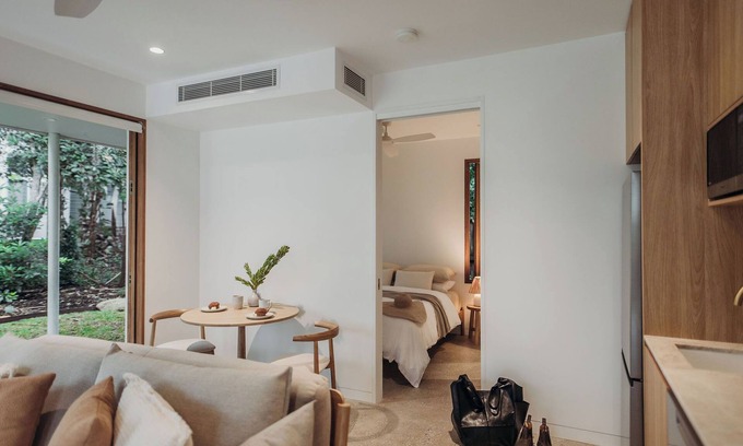 Welcome to your ultimate coastal escape. This brand new 1 bedroom studio is perfect for a couple seeking a stylish and serene getaway in the unspoiled beauty of Hawks Nest, NSW. Just 20 metres from the tranquil shores of Winda Woppa Bay, this stunning water side property is situated perfectly between Winda Woppa beach and the Myall river (20 meters walk to either) – perfect for swimming, kayaking, or simply relaxing by the water’s edge. The Osprey studio can be booked on its own for a couple’s getaway (and separated off from the main house by a custom solid timber sliding wall), or it can be booked as part of the main Osprey at Hawks Nest house. If booked as the studio alone, it features modern neutral aesthetics and top-of-the-line finishes along with: Private driveway and access Outdoor dining Outdoor shower and clothes line Private ensuite, lounge room, kitchen and laundry facilities Ability to convert the sofa into a sofa bed for young children at an additional charge. Whether you’re enjoying happy hour on your private patio, unwinding with a glass of wine as the sun sets over the water, or exploring the untouched beaches and bushland of the Myall Coast, this fully equipped studio is the perfect base for your peaceful escape. Relax, Recharge & Reconnect.