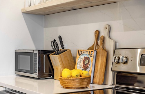 When it’s time to recharge, retreat to one of four comfortable bedrooms. Bedrooms 1 and 2 each offer an ensuite bathroom, while an additional full bathroom and half bathroom ensure plenty of space for your group to get ready for another day of Nashville adventures.