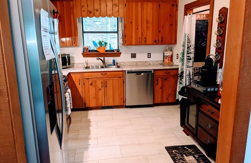 Our road through the neighborhood is a circle. It loops around making it easy to access the driveway from either direction. The access road leading up to the cabin is a steep incline and not suited for all cars & drivers. Parking is limited so we request no more than two vehicles in the driveway. The speed limit throughout the neighborhood is 10 mph. We want our guest to enjoy all our property has to offer while being respectful while respecting the full time residents in our community. Noise does carry so we ask that our guest respect the outdoor quite hours from 10pm to 6am.
