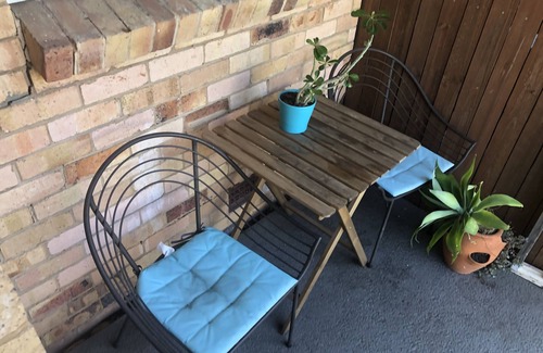 The Position is Perfect so no need for a car off street Parking, small back deck with seating for two people.
