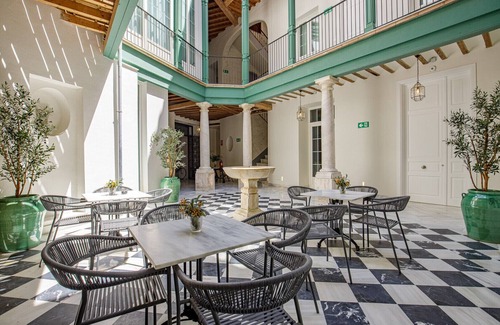 This stately Andalusian palace with a discreet façade has 14 apartments and a large central patio adorned by Renaissance columns and is the result of delicate restoration and enhancement work. Every corner reflects the commitment of the best and finest local artisans, creating a unique atmosphere that evokes a flourishing era of our history and modern comfort.