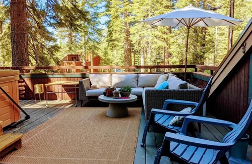 Fully furnished 4-bedroom cabin home that is a ~10-minute drive to Lake Tahoe, Tahoe City, and Palisades. It has a hot tub, fully-equipped kitchen, fast WIFI, smart speakers / Home Assistant, and Chromecast for the TVs.