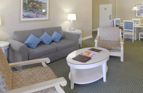 The resort offers both 1 bedroom and 2 bedroom units. The 1 bedroom unit consists of a master bedroom with a king-sized bed, a full living room with a queen-size sleeper sofa, and a full kitchen. On the other hand, the 2 bedroom unit features a master suite with a king-sized bed, a guest suite with 1-2 queen-sized beds, 1 bathroom, and a full kitchen/living room area with a queen-size sleeper sofa.