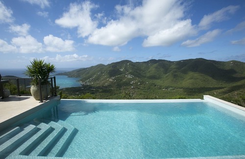 Life can be slowly savored at Palm Ridge Villa, morning coffee on the decks, a rum and tonic by the infinity edge pool in the tropical sun, a canopy of a million stars at night. We have an upper roof deck with amazing views of St. John and British Virgin Islands. Beautifully landscaped villa. Beautiful, detailed woodwork. Covered deck behind pool with shade all day.