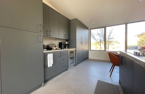 Paradise Canyon - Estate 1 is an architectural masterpiece designed by Cathy Hayes, an accomplished architect with training in Chicago, inspired by the work of Frank Lloyd Wright and gaining recognition in Phoenix. Hayes has significant experience with astounding architecture, such as The Sanctuary Resort, The Arrogant Butcher, and Buck & Rider, which she brings to life in Paradise Canyon - Estate 1. This compound aims to combine the attraction of a desert oasis with the enduring sophistication of Chicago's architectural legacy. The design has been precisely crafted to merge perfectly with the surrounding desert nature in every detail.
