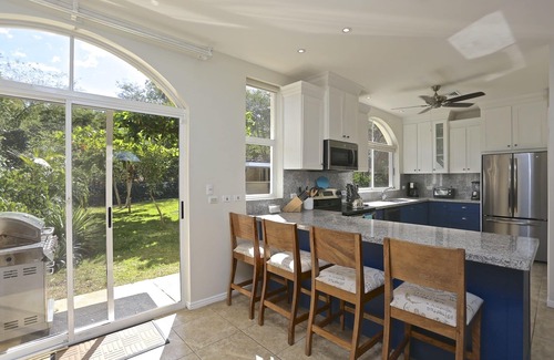 Location! Location! Location! Our home has been renovated and designer decorated. This 1650 sq ft, 2 storey home comfortably sleeps 4, with ocean views. The open concept main floor has a gourmet kitchen and powder room. Wake up in the morning, walk out on your private balcony and enjoy the ocean view from the master bedroom with a full ensuite and walk in closet. The second bedroom with full ensuite and plenty of closet space features a walk out private balcony with a view of the garden and pool. Under 10 minute walk to the beach, restaurants, shopping or movie theater. Located on a hill top, our home is not for people with mobility issues since there are 2 flights of stairs from the parking to the front door.