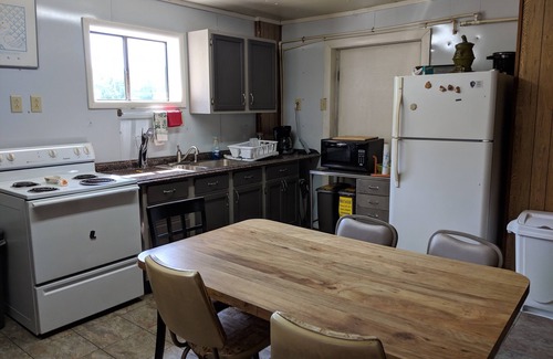 The Buffalo River Bunkhouse features dormitory-style sleeping which families & groups find agreeable. A 40' X 20' covered patio is outfitted with gas grill, picnic tables and lounge chairs. This veranda overlooks the Little Buffalo River and provides a place to picnic and lounge while protected from the elements of weather. 200 channel Dish satellite t.v. & WiFi.