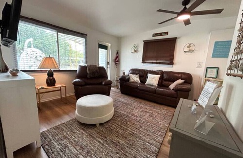 After a day of adventure, retire to one of the two comfortable bedrooms, each thoughtfully decorated to evoke a sense of tranquility and relaxation. The master bedroom has a queen size bed. The second bedroom has a bunk bed with a full on the bottom and a twin on the top. With plush bedding and ample storage space, you'll feel right at home from the moment you arrive.