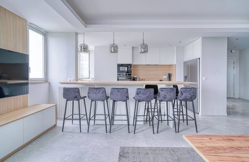 🧑🍳 **The kitchen** is fully equipped and a dream for any amateur chef. It includes everything you need to prepare meals, with an American-style fridge, oven, microwave, stove, dishwasher, and plenty of utensils. Whether you're preparing a quick breakfast or a gourmet dinner, everything is at your disposal.