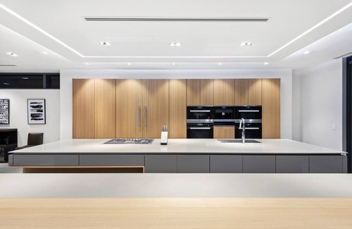 ✓ Gourmet Kitchen: A large kitchen with 2 islands, a separate bar/coffee counter, and a wine cooler.