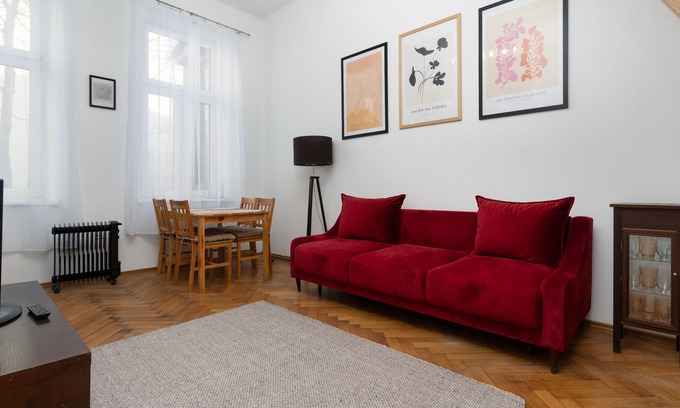 Park Strzelecki Two-Level Apartment is located in an excellent location in Krakow, just a short 15-minute walk from the Main Market Square and Florian Gate, where you can enjoy many tourist attractions and excellent restaurants offering cuisine from around the world. It's worth visiting places like the Cloth Hall, St. Mary's Basilica, the Barbican, or the Czartoryski Museum. While in the Old Town, you should also take a stroll to the nearby Wawel Castle. Wawel Castle is one of the most important and beautiful places in Krakow and all of Poland. Located on a hill in the city center, it is not only a symbol of Krakow but also a key element of our national cultural heritage. Today, Wawel Castle is not only a museum but also an important cultural center where exhibitions, concerts, and other events are organized. It attracts millions of tourists from around the world who want to learn about Poland's and Krakow's rich history. Nearby, there are various places worth visiting, such as the Botanical Garden of the Jagiellonian University, Strzelecki Park, Jan Nowak-Jeziorański Square, or the Krakow Opera. It's worth visiting the Strzelecki Park located right next to the apartment. It's an ideal place to relax amidst nature without leaving the city center. In the immediate vicinity, you can also find various shops, cafes, restaurants, service points, entertainment venues, and the Galeria Krakowska shopping center. The apartment is well connected due to the nearby numerous bus and tram stops (Lubicz, University of Economics) as well as the main railway station - Kraków Główny.