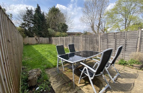 Relax at this peaceful place to stay with its own private garden & parking on the driveway for 2 cars. We would love to welcome you to our two bedroom self contained maisonette nr Reading. Within easy walking distance to Reading University 12 mins & Royal Berkshire Hospital 22 mins, just a short walk away from the main bus routes into the town centre a 7 min drive to Green Park Business Park & 8 min drive to J11 M4.