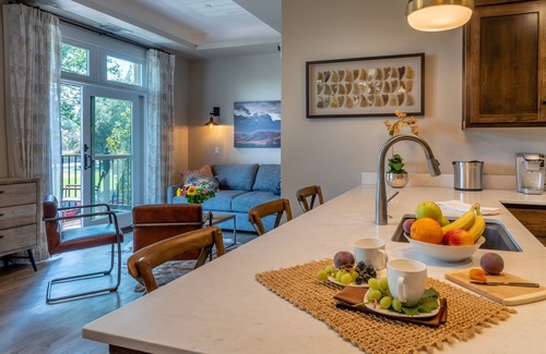 Paso Park Suites offer the only downtown balcony living overlooking the town square. Take time to linger over an evening glass of wine or morning coffee on your private balconies, two with this suite! Every detail is anticipated and executed with superior quality, combining city living with small town charm in one perfect location. Digital sound system on site, ready for you to hook up to your personal playlists. Ice maker and laundry area available to all guests. On-street parking only, no assigned parking. Single elevator onsite. In case of maintenance issue, use of stairs may be required. City Permit #STR19-0294. ***Five Star Coffee Program- We start your stay with a supply of coffee, filters, coffee pods, cream, and sugar for our provided drip and pod-style coffee makers onsite at every home.***Wi-Fi and/or power outages can occur periodically in our small town and rural settings, over which we have no control***There may be wildlife on site, including bugs, both inside and outside.***