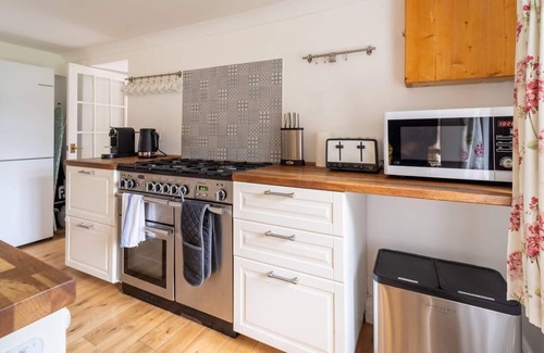 The fully equipped kitchen/diner boasts modern amenities including a Nespresso machine (please bring your own pods), tall fridge freezer and range cooker. The breakfast bar and dining table provides ample seating for enjoying meals together in comfort.