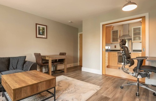 - This apartment is well setup for working whilst away. The coffee table in the living area offers a purpose built pull-out laptop working area. In addition there is a separate work/study desk in the living room, the desk has the ability to be raised electronically to standing height, if preferred. There is also a 32-inch curved monitor (cables provided) and office chair.