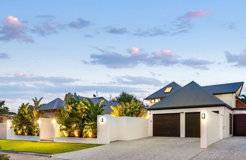 Unwind at Pavilions on Bok and discover a luxurious blend of contemporary design and South Pacific-inspired tranquillity, creating the perfect setting for an unforgettable Sunshine Coast holiday. This architectural masterpiece redefines beachside living, offering a seamless fusion of style, functionality, and serenity. Located in the exclusive Bokarina Beach Courts, just steps from beach access, this is your chance to holiday in a home that is as unique as the coastal lifestyle it embraces.