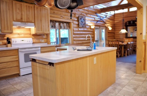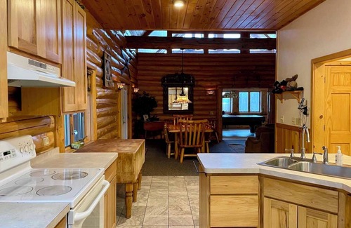 This spacious log home has the ultimate Up North lodge feel! There are 3 bedrooms and 2 baths, with sleeping for up to 14. There is ample room for larger groups to spread out and plenty of games to keep everyone entertained.