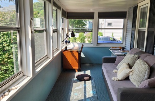 We welcome you to our cottage away from it all but still close to all activities that make the North Fork a magical place to visit. Within 5 - 15 minutes you can walk to all that the Greenport town has to offer and to 2 beaches. No need to have a car as you can walk from the train or bus from the city. Our fenced in back yard is perfect for dogs and little humans to roam freely and has a basketball hoop, dining table, metal firepit and lounge space.. The cottage is simple, clean and cozy, a real home full of character and charm, with a fully stocked kitchen, screened in front porch, and large flat screen TV with Xbox. Sheets and towels are high end and mattress is new for maximal comfort. Our home is perfect for those seeking peaceful relaxation yet close to terrific restaurants, farms and wineries. Beach chairs and basic beach bikes also available on request so you really can pack minimally. Beach pass obtainable for long term renters.