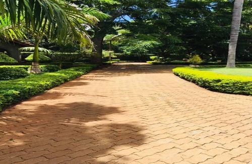 The house sits on top of a hill in the northern leafy surburbs of Harare . The area is a very safe and quiet neighborhood. The house itself is on a big property which comes with a picturesque manicured garden and pool.