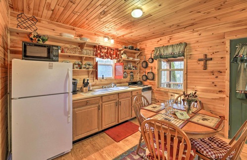 Coming for a couple's retreat, small family getaway, or a Mountain City solo adventure? Then look no further than this charming vacation rental on Cross Creek Ranch! The quaint cabin sits on 95 private acres and includes a lofted sleeping area, a bathroom, a well-equipped kitchen, a screened porch, and stunning views. Spend relaxing days in nature at Doe Mountain Recreation Area, enjoy a glass of merlot at Watauga Lake Winery, or make s'mores around the fire under a star-studded sky.