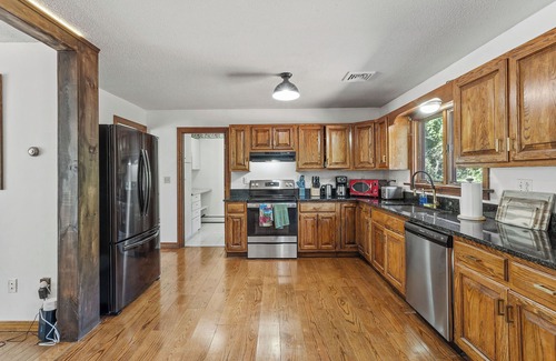 Looking for a comfortable, spacious home with plenty of room for your group? This two-story house offers a mix of modern updates and classic charm, making it a great option for your next getaway.