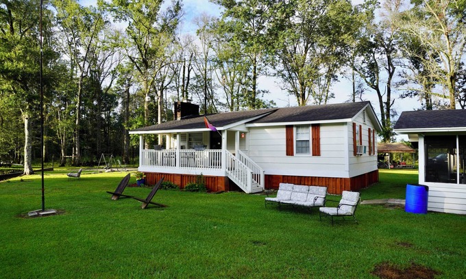 Unwind in Branchville at this charming house on the Edisto River. With 2 queen beds in 2 cozy bedrooms. Guests can recharge after a day of exploring, traveling, or just a little family retreat. The bathroom features a refreshing shower and sink. A relaxing living room with heating and AC to ensure a comfortable stay. Experience what Branchville has to offer with a stay at our lovely river house. Whether you're drinking a cup of coffee on the back porch, cruising down the river, sitting by a fire in the backyard, or hanging out on the comfy side porch area - our property may be the perfect fit for you!