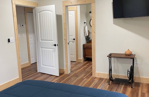 Sip your morning coffee on the covered porch while listening to the birds and watching wildlife. The Hideout is set in a rural area of the country in NW Arkansas. After a great night’s sleep in the King Sleep Number bed or queen bed, enjoy a day trip to Eureka Springs, Branson or the Buffalo River area. Your evenings can be spent around the fire pit or grilling on the provided Weber grill. The area is great for ebikes, side-by-sides, fishing, canoeing, kayaking and hiking. On rainy days, enjoy the sound of the rain on the metal roof as you curl up to watch a movie on one of the three flat screen tvs or cozy up in front of the gas fireplace. With a full kitchen, you can whip up a great meal then take advantage of the full dishwasher. All kitchen essentials are provided. Farmhouse decor accentuates the house and has been lovingly collected to give the place a homey feel. *Note: one mile down dirt road
