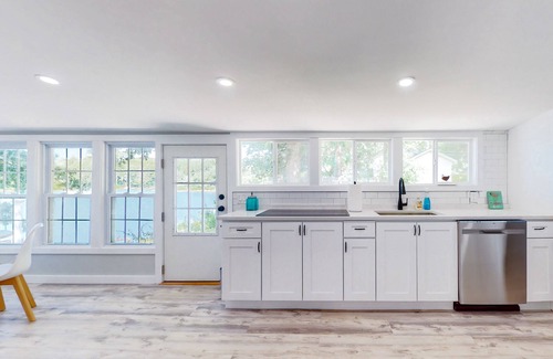 Inside, this peaceful cottage's new renovations are sure to make you smile. The open-concept layout comes together in perfect unison with ample meal prep space, stainless steel appliances, a convenient cooktop, soft seating, and a large Amazon Fire-equipped TV. The work desk overlooks magnificent views, ensuring remote workers feel at peace while tuning into their projects, and the bedrooms are extra plush with high-quality linens and partial air-conditioning.